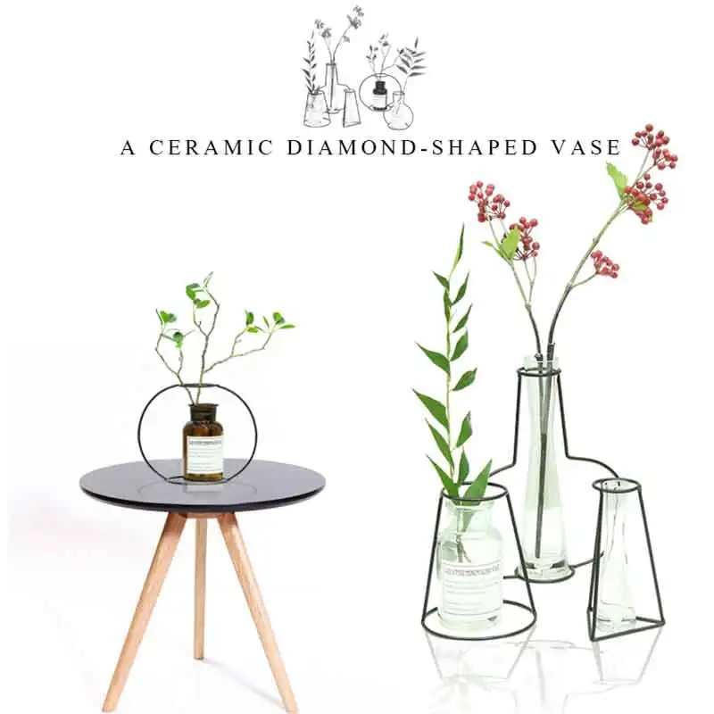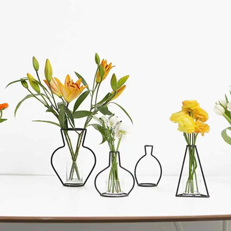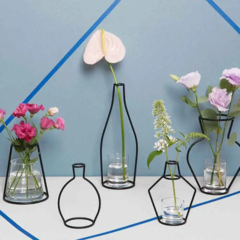 Creative Vase Dried Flower Ornaments Shelf Soilless Iron Vase Planter Rack Pots Organizer Home Decoration Accessories Modern