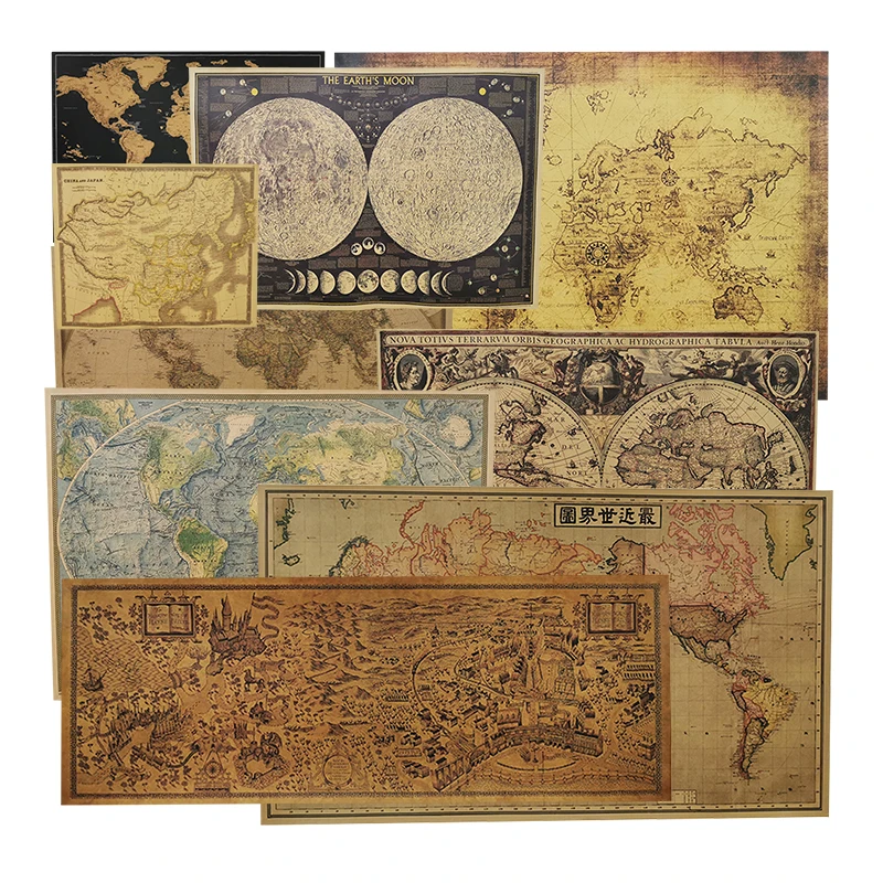 1 pcs English poster Vintage decoration Student school stylistic teaching geography atlas Science fiction movie treasure map
