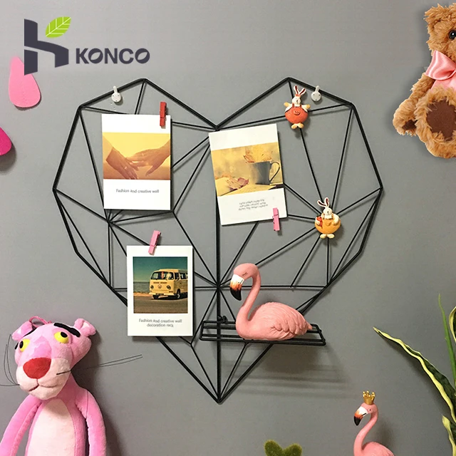 Konco INS House Decor Iron Heart-shaped Storage Rack Nordic Grid Photo Wall Home Wall Photo Props B